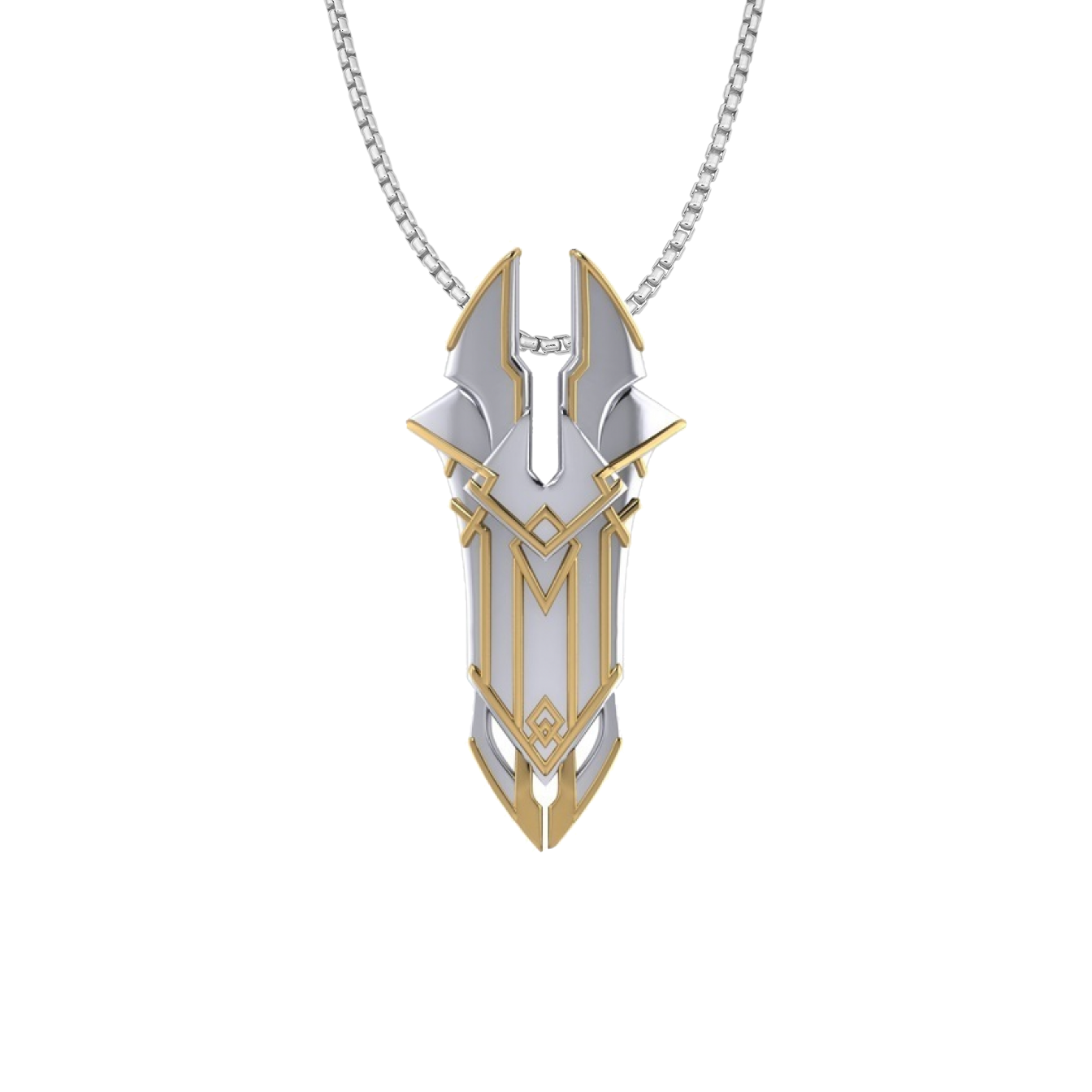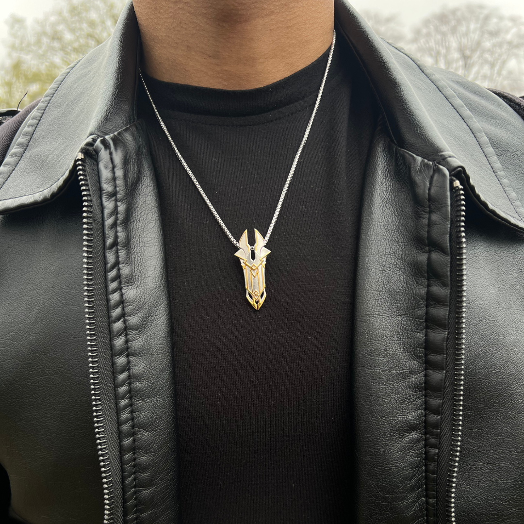 Jewelry Quality Designs: Rhodium-Plated, Nickel-Free, 925 Sterling Silver with 14k Gold-Plated detailing. Shield ranges 40mm in height. CHAIN IS NOT INCLUDED.