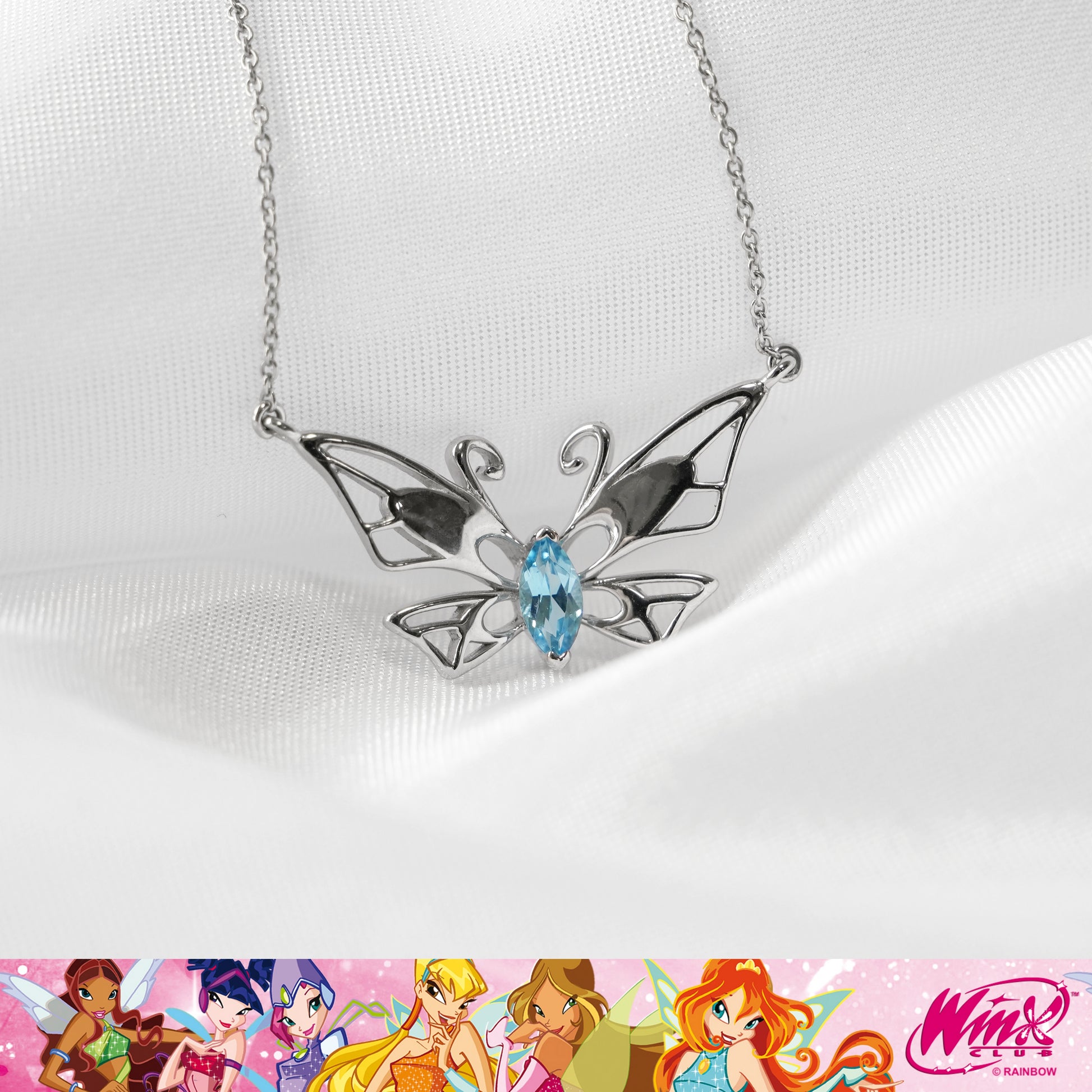 Jewelry Quality Designs: Rhodium-Plated, Nickel-Free, 925 Sterling Silver with chain attached. Pendant is 24x13mm in size with a blue topaz gem.