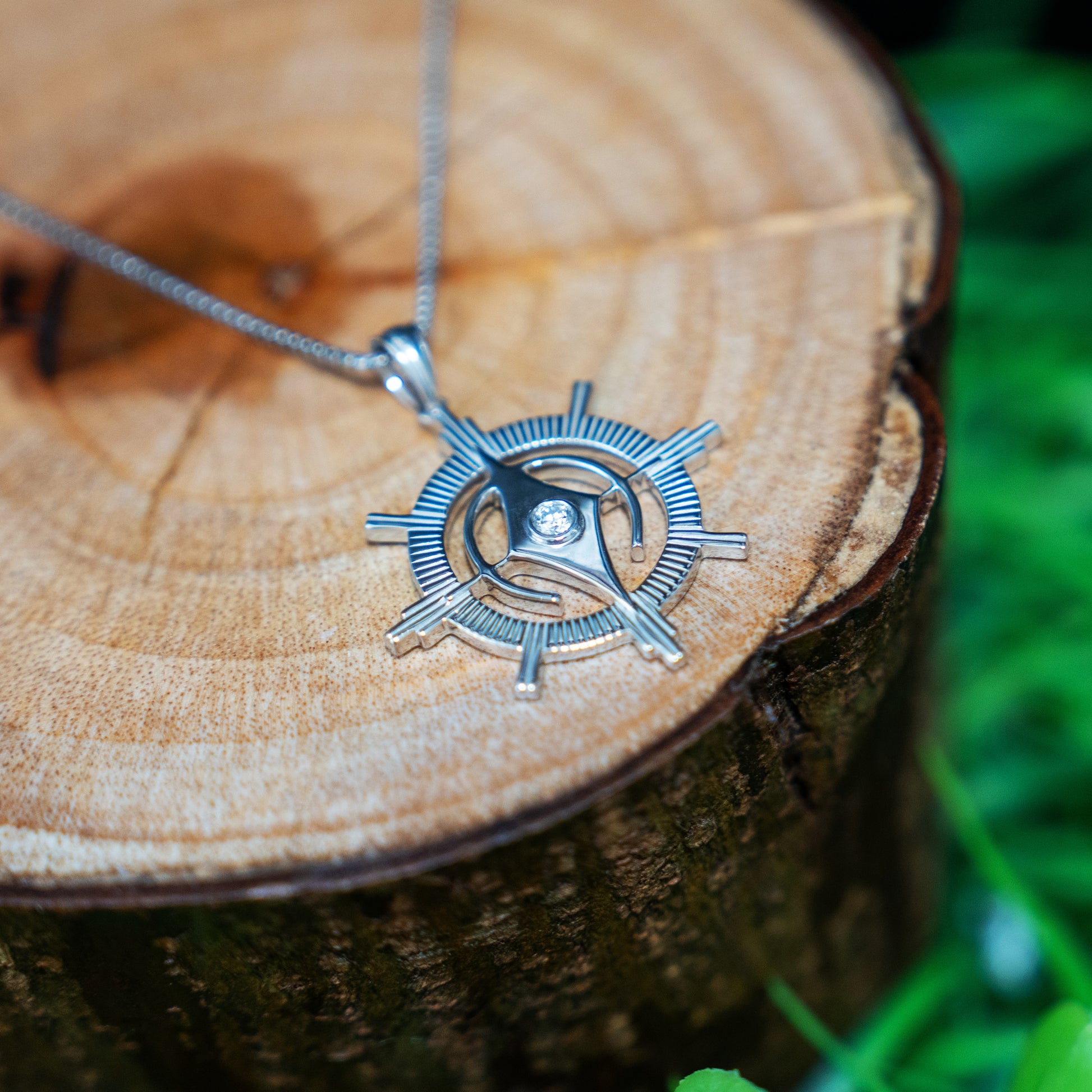 Jewelry Quality Designs: Handcrafted in rhodium-plated, nickel-free, 925 sterling silver and accented with a bezel-set cubic zirconia. Pendant size 32x40 mm (including bail). CHAIN NOT INCLUDED.