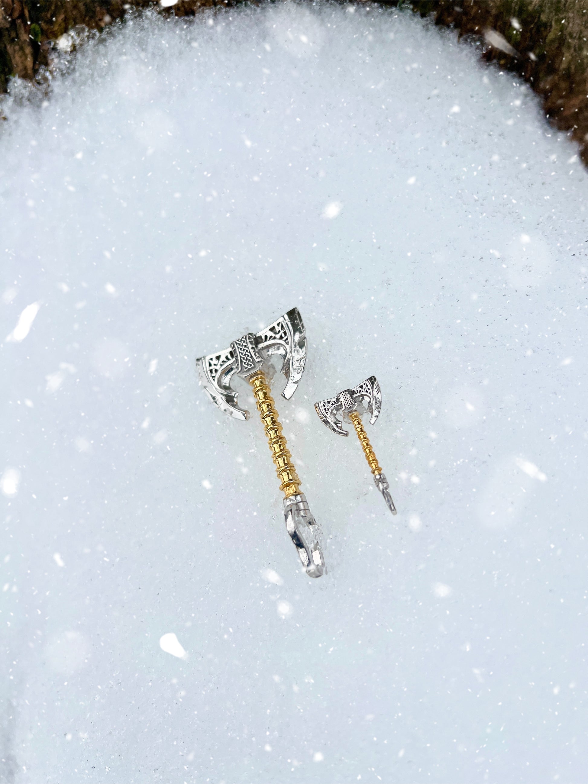 Jewelry Quality Designs: Handcrafted in Rhodium-Plated, Nickel-Free, 925 Sterling Silver and 14k Gold-Plated Accents. The Axe is 65mm in Height and 32mm wide at the Blade. CHAIN NOT INCLUDED