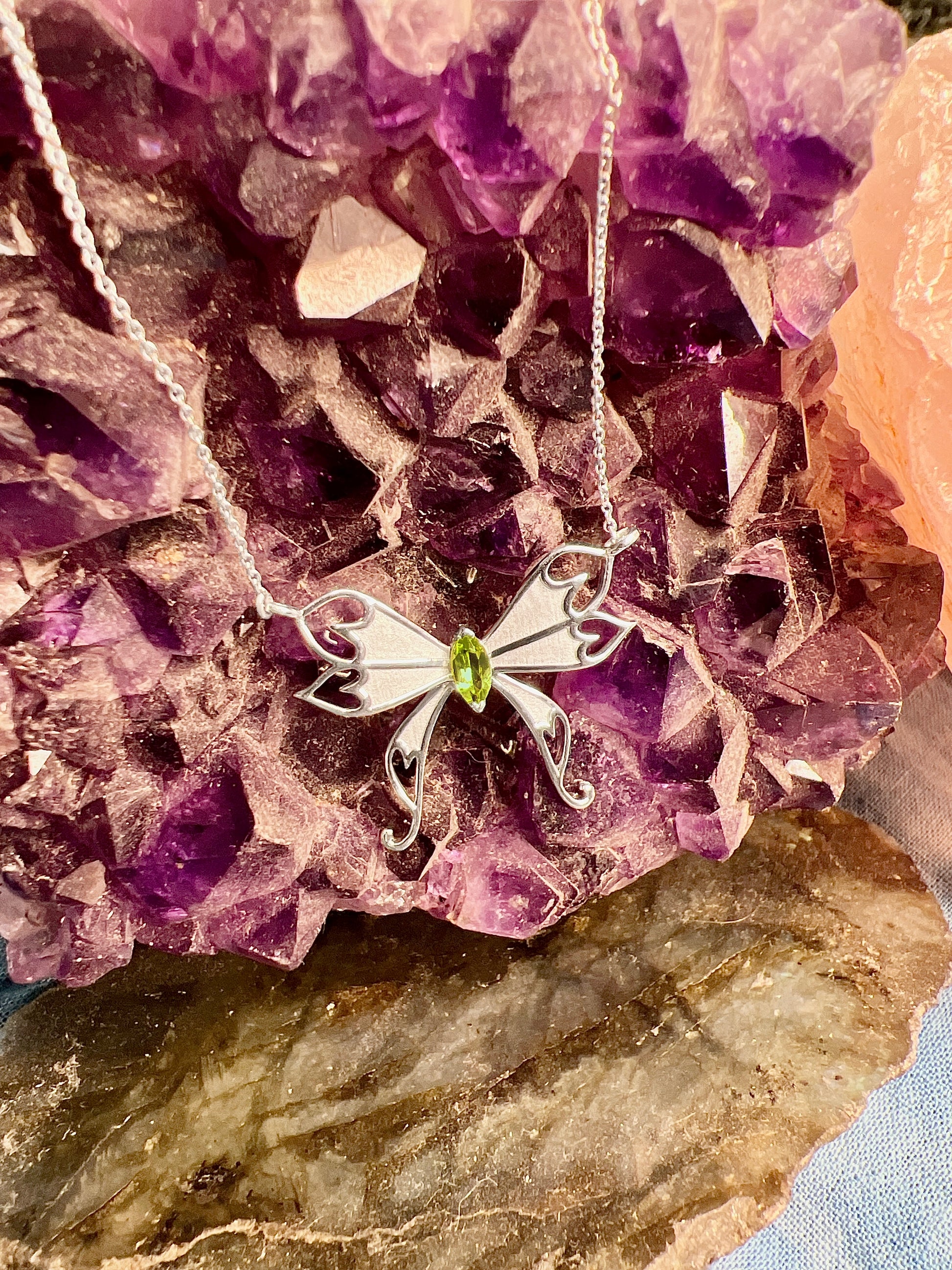 Jewelry Quality Designs: Handcrafted in rhodium-plated, nickel-free, 925 sterling silver and set with a genuine peridot, the Aisha Wings Pendant is paired with a 16/18" adjustable chain and measures 23x28 mm.